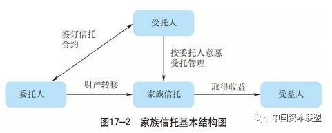 但从更高层次的广义家族信托业务范围来看,家族信托不仅仅是一种增值保值的理财工具,而且是高净值客户和超高净值客户股权/房屋等非资金资产信托、子女教育信托、医疗养护信托、婚姻财产安全信托及遗嘱信托等委托事务等需求的重要工具和载体,而恰恰此类信托业务均具有较为明显的事务信托特征和要素。这一态势已在2016年家族财富管理信托的部分业务中初露端倪。 二、家族信托典型模式 家族成员作为委托人,将合法财产委托给信托公司,由信托公司代为管理、处置家庭财产,向指定受益人进行管理财产或收益的分配,从而实现客户财富规划及传承目标。